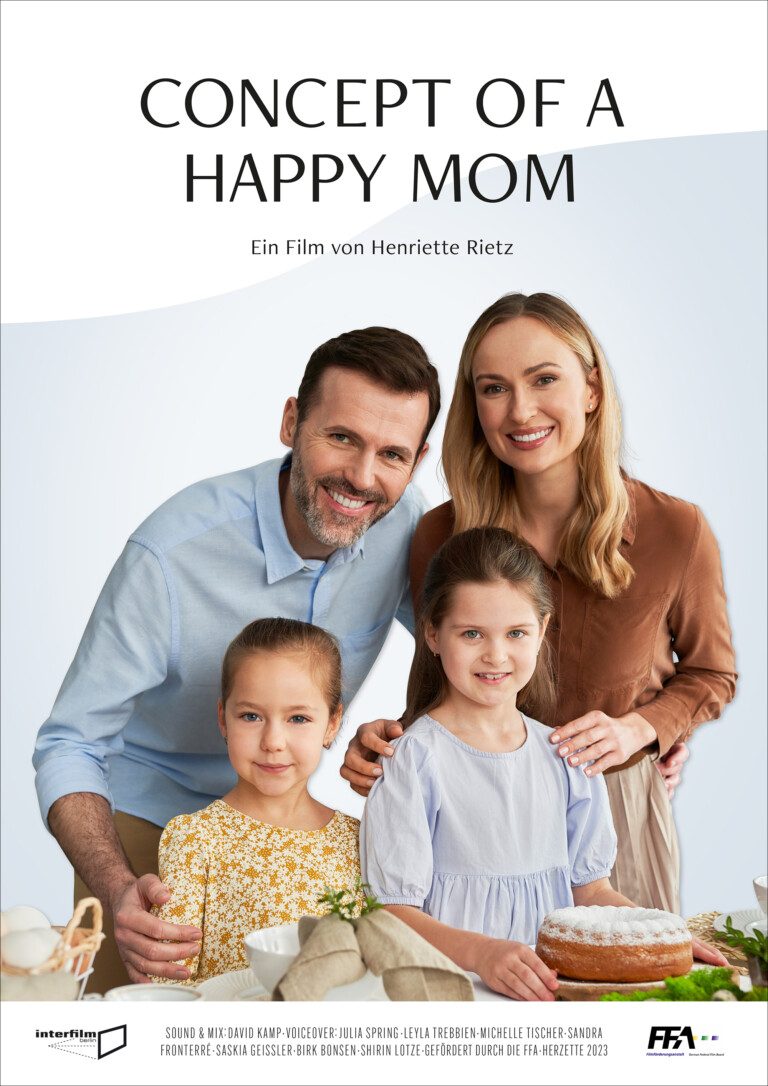 I directed Concept of a Happy Mom, an experimental short film about mental load and the myth of the happy mother. It was built from hundreds of honest voices and premiered at the Interfilm Festival at Berlin’s Volksbühne in 2023.